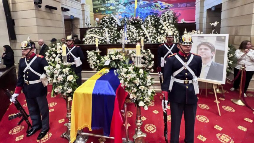 La comitiva oficial se dirigió al Panteón Nacional para presentar una ofrenda floral ante el sarcófago de Bolívar por su fallecimiento.