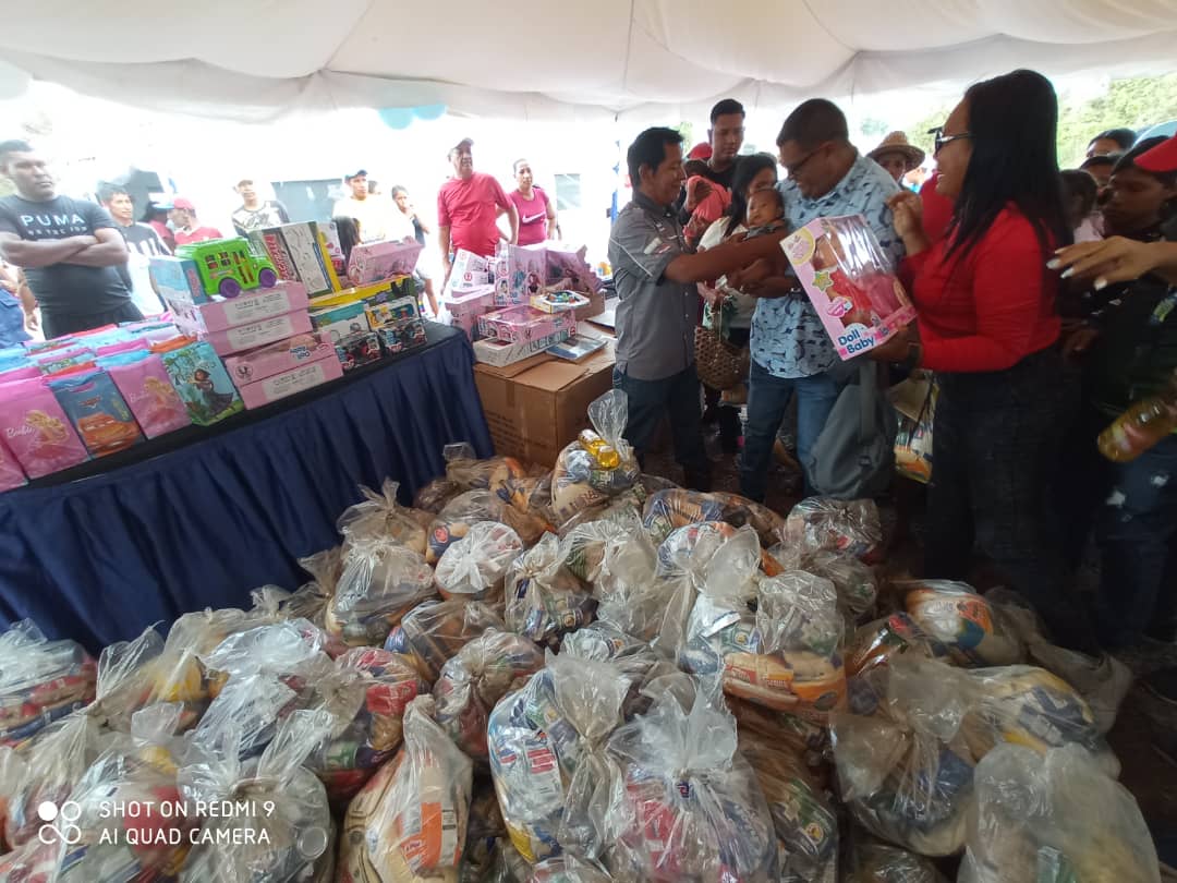 Asimismo, el mandatario local realizó la entrega de 150 atenciones Clap y 150 juguetes para los niños. «Estamos llevando alegría al semillero de la Patria, a los niños indígenas, a esos niños bellos, hermosos, que nos dan con su mirada, esa inocencia que muchas veces nos transmite tranquilidad, felicidad y paz, hoy estamos haciendo entrega de más de 150 regalos en esta comunidad, para la felicidad de estos niños que solo han sido reconocidos en nuestra revolución», señaló el Alcalde.