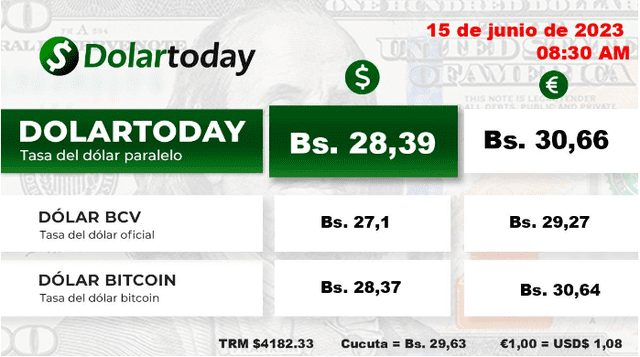 El precio del dólar hoy en Venezuela refleja que el cambio de dólares en Cúcuta, Colombia, en la frontera colar con Venezuela, fue de 29,63 bolívares. Mientras el dólar Bitcoin está en Bs. 28,37.
