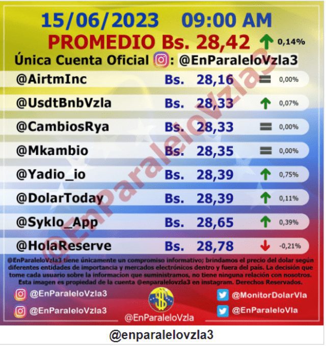Según el portal DolarToday en Venezuela, el cambio se encuentra este jueves en 28,39 bolívares por dólar en el mercado paralelo.