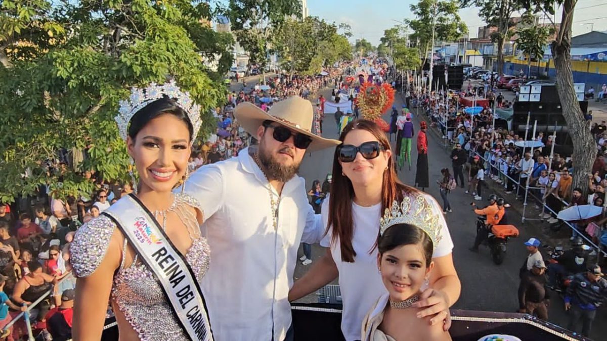 Además, la carroza de la Gobernación del estado Monagas y la Alcaldía Bolivariana de Maturín, reunió por primera vez al gobernador Ernesto Luna y la alcaldesa Ana Fuentes con la nueva Reina del Carnaval de Maturín, María Virginia Velásquez y la Mini Reina 2025, Stefani Noe.