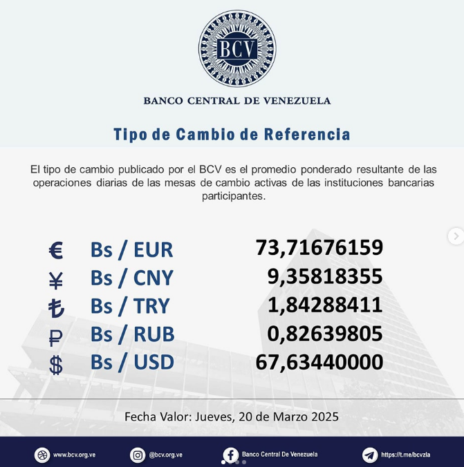 | 18/03/2025 | Banesco | 66,7011 | 67,2229 |