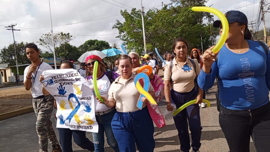Estudiantes, familiares y docentes del Taller laboral de Educación Gran Mariscal, ubicado en el sector Los Cortijos, marcharon alrededor de las principales calles de la zona en el día del Síndrome de Down.