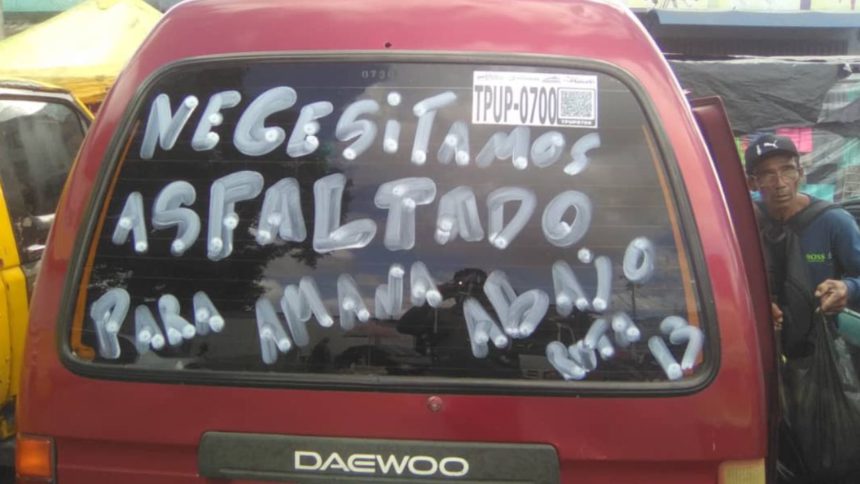 Alegan los denunciantes que el asfaltado de la calle principal urge, debido a que la misma se encuentra en estado de deterioro al grado que afecta el tránsito vehicular, y los conductores de la Ruta 13 ya no quieren meterse hacia Amana Abajo, por temor a que se les dañen partes a sus carros, cuyos repuestos son muy costosos.