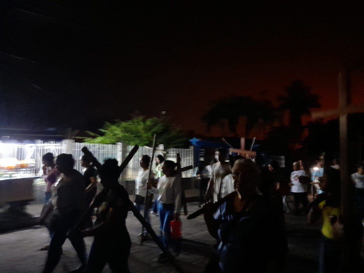 Este Domingo de Ramos, en El Tejero estuvieron a oscuras, por lo que el sacerdote junto a su feligresía debieron realizar la procesión en medio del apagón. «La luz llegó justo después de la procesión», afirmó una de las feligreses.