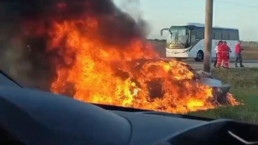 Según testigos del hecho, el vehículo Renault Logan color blanco colisionó contra un poste de electricidad incendiándose de inmediato.