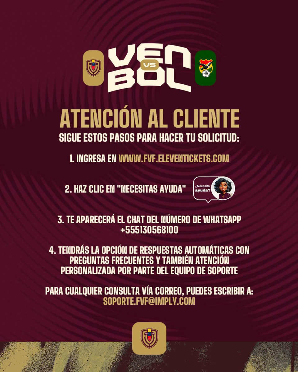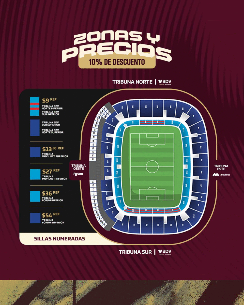 La información fue suministrada por la Federación Venezolana de Fútbol, (FVF) quien invitó a la fanaticada a aprovechar la oportunidad de adquirir las entradas en preventa con un 10% de descuento, solo los días del 28 al 30 de abril, de manera limitada a través de la página www.fvf.com.ve.