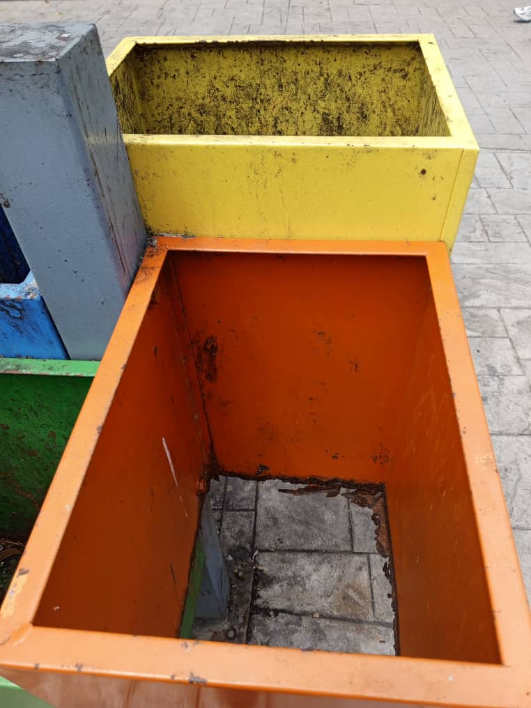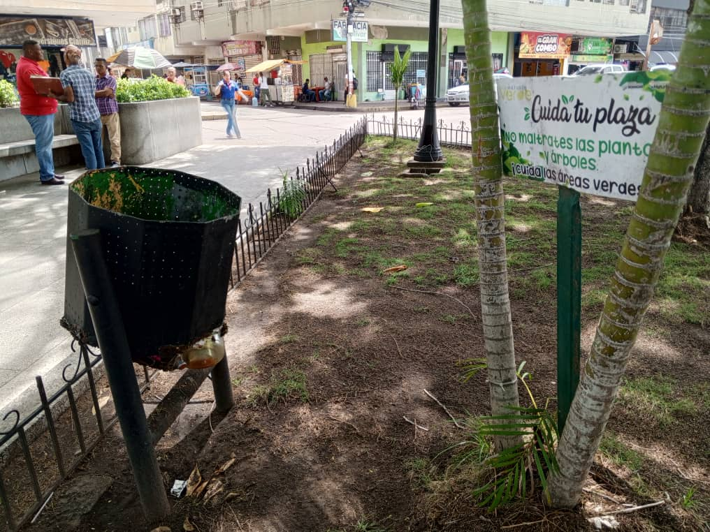 De igual manera, en la plaza Ayacucho, las papeleras ecológicas implementadas por la Alcaldía de Maturín, han quedado para recuerdo, debido a que las mismas no tienen soporte debajo, por lo que tratar de botar basura en ellas, es tarea imposible.
