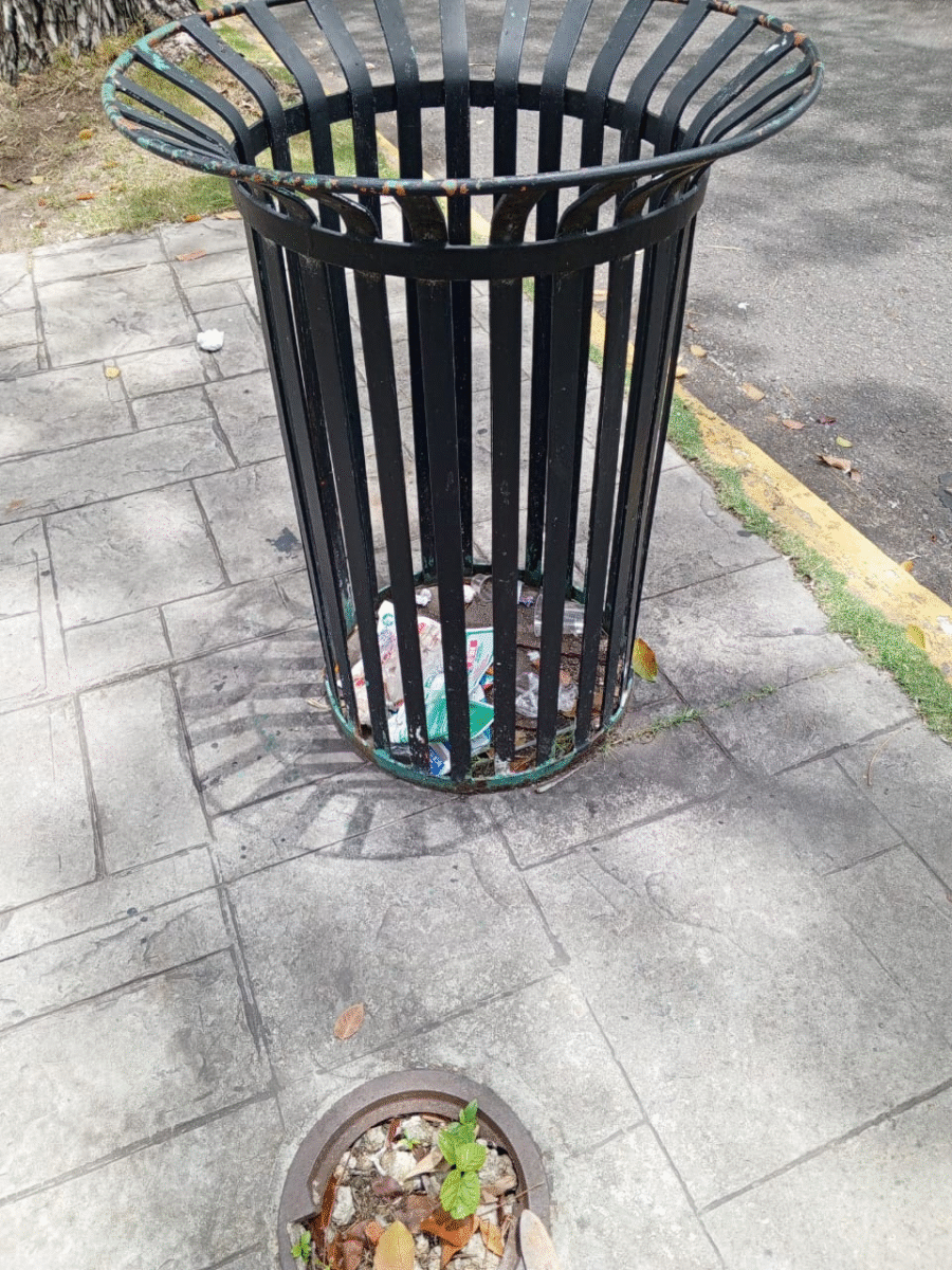 Andrea Ramírez, también destacó la observación de las tanquillas sin tapa, «Eso es peligroso y casi ninguna tanquilla tiene tapa, si uno va descuidado y mete el pie en una tanquilla de esas, se puede estropear todo, las papeleras de hierro, también las han roto, debería haber mayor seguridad para que la gente aprenda a cuidar las cosas, a esas papeleras ni bolsas le colocan para recoger la basura, eso se ve horrible».