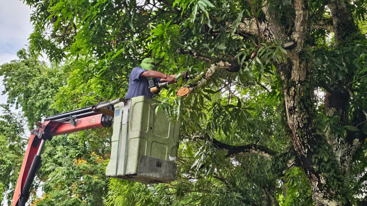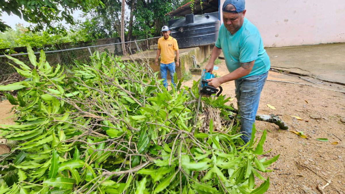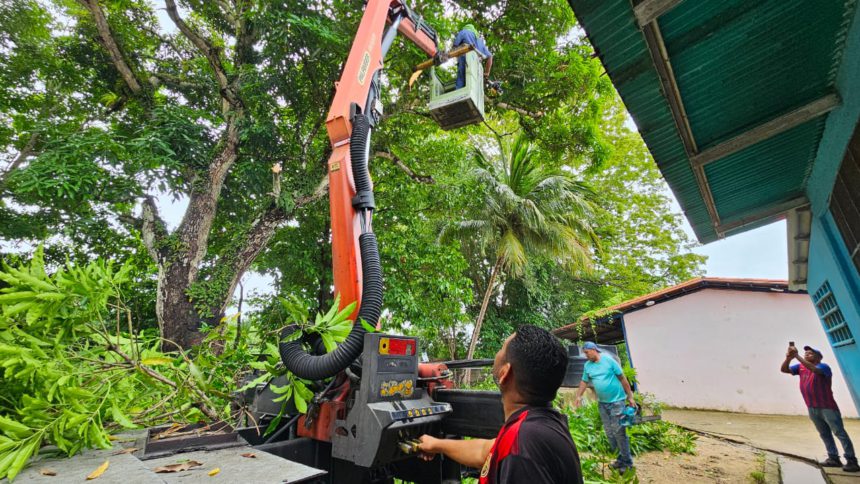 Este martes, la Alcaldía de Maturín a través de la dirección de Alumbrado Público, realizó una jornada de pico y poda en la escuela Andrés Bello, de Costo Arriba, con el fin de evitarle riesgo a los estudiantes.