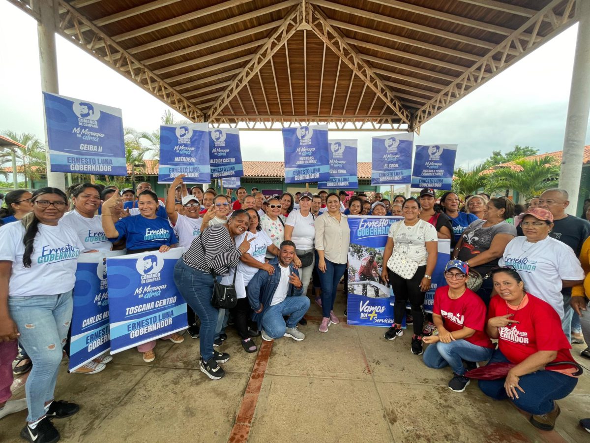 Durante la actividad, como muestra de respaldo y reconocimiento, entregó a los jefes de calle, más de 400 franelas y pendones enviados alusivos al candidato Ernesto Luna, para fortalecer aún más su identidad y compromiso.