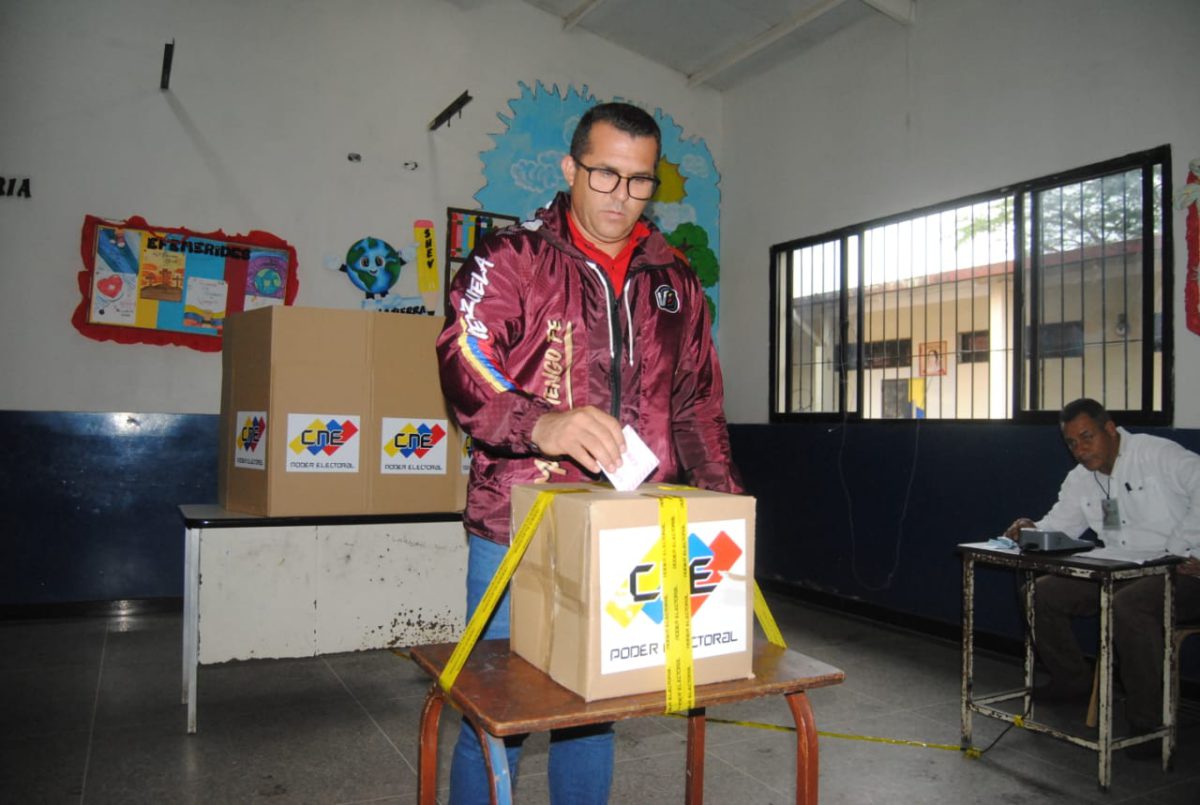 El gerente municipal asistió a la Escuela Alberto Ravell acompañado de la primera dama del municipio, Rosa Millán de Cedeño, para ejercer su derecho al voto.