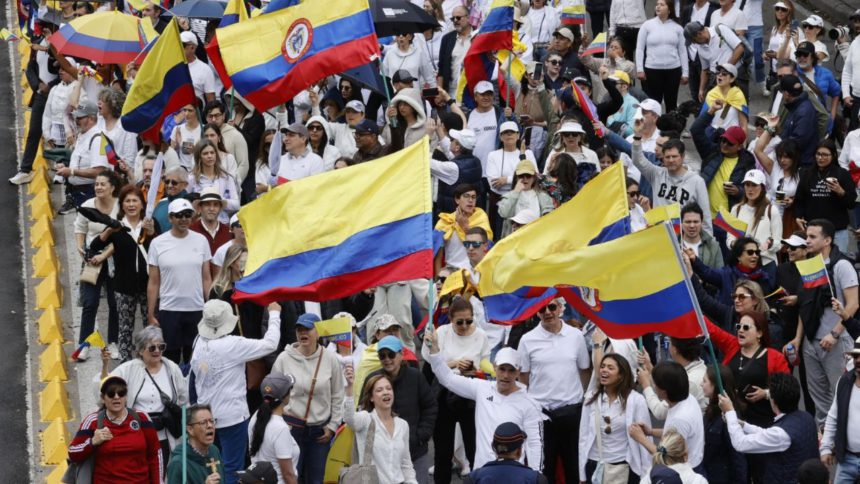 Los ciudadanos colombianos se manifiestan este domingo en las calles en contra la violencia y respaldar la democracia, a raíz del atentado perpetrado contra el senador y aspirante presidencial Miguel Uribe Turbay hace una semana, así como la ola de terrorismo que causó la muerte de ocho personas y más de 80 heridos en el suroeste del país.
