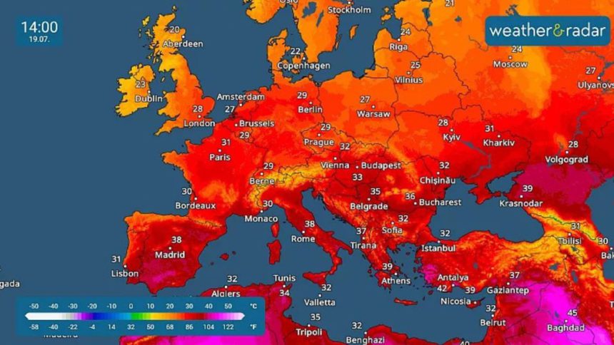 Este lunes, una intensa ola de calor en Europa provocada por el anticiclón africano, eleva las temperaturas extremas que han alcanzado entre 34 y 36 grados de norte a sur, y algunas ciudades registrando picos de hasta 40 grados.