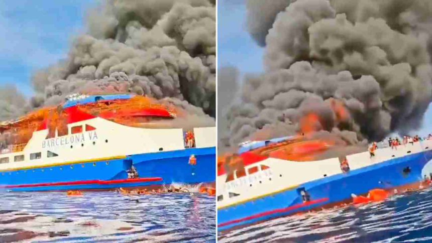 El incidente fue capturado en vídeo y compartido en la red social Facebook por uno de los pasajeros, Abdul Rahman Agu, que capturó los momentos iniciales de pánico entre la tripulación al observar las intensas llamas y humo en el KM Barcelona.