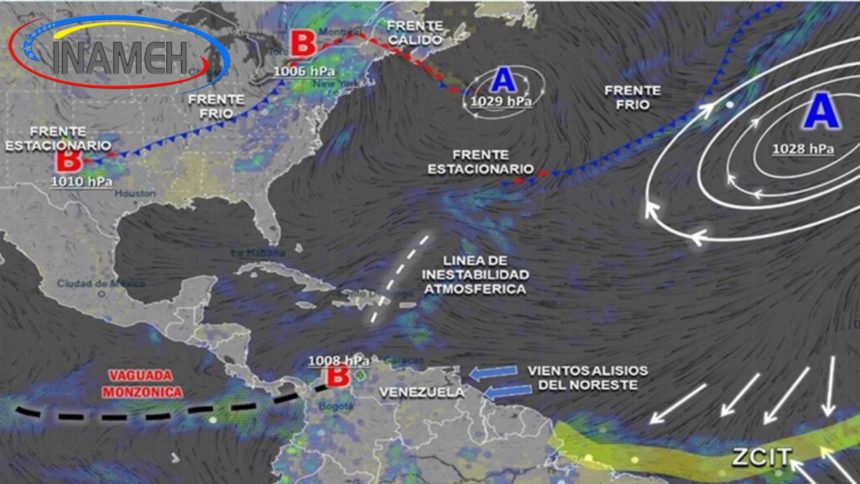 La actividad de la vaguada monzónica en Venezuela es un factor clave en la precipitación durante este período de lluvias. Vaguada monzónica/Zona de Convergencia Intertropical sobre el territorio nacional.