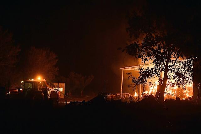 El fuego comenzó en un bosque de pinos cercano al pueblo de Kastaniá y, alimentado por intensos vientos, se extendió rápidamente hacia el sur y el oeste.