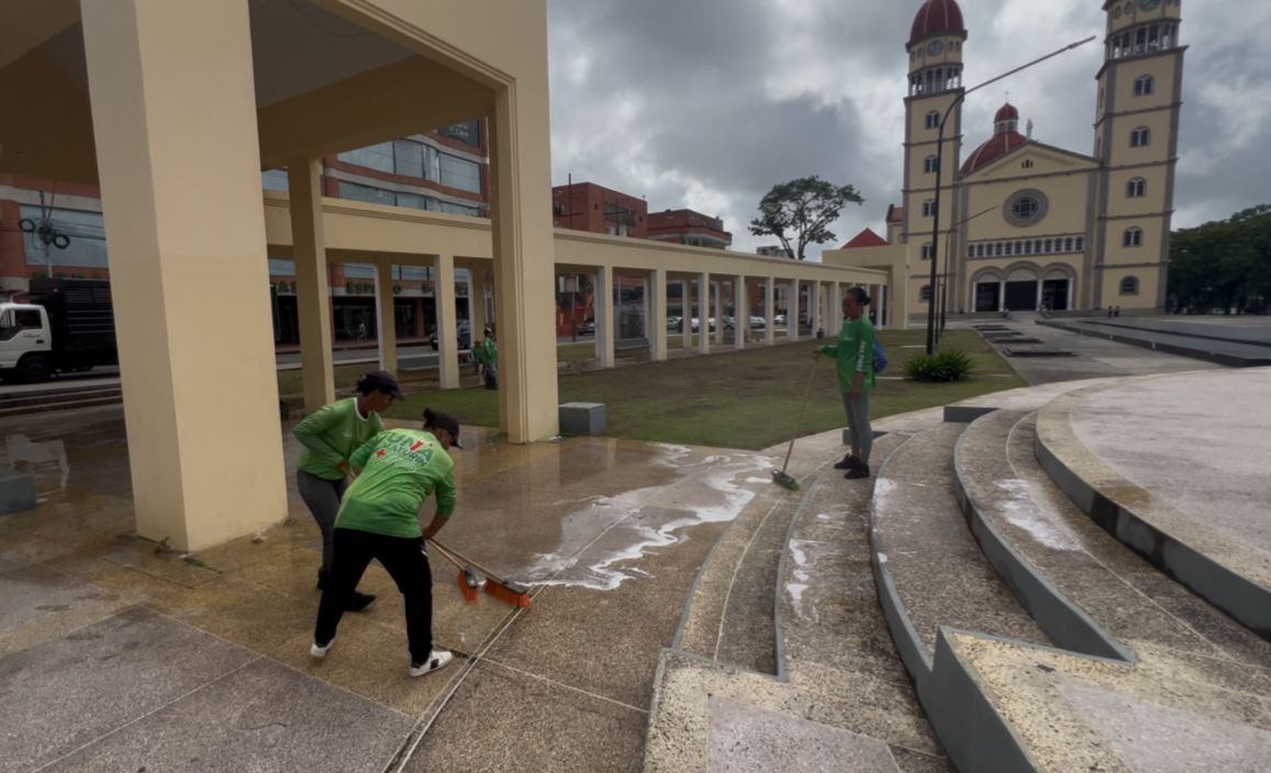 Este martes, la cuadrilla de barrido estuvo encargada de las labores de desinfección en la plazoleta de la Catedral, así como en las escaleras que conducen a la estatua del Dr. José Gregorio Hernández.