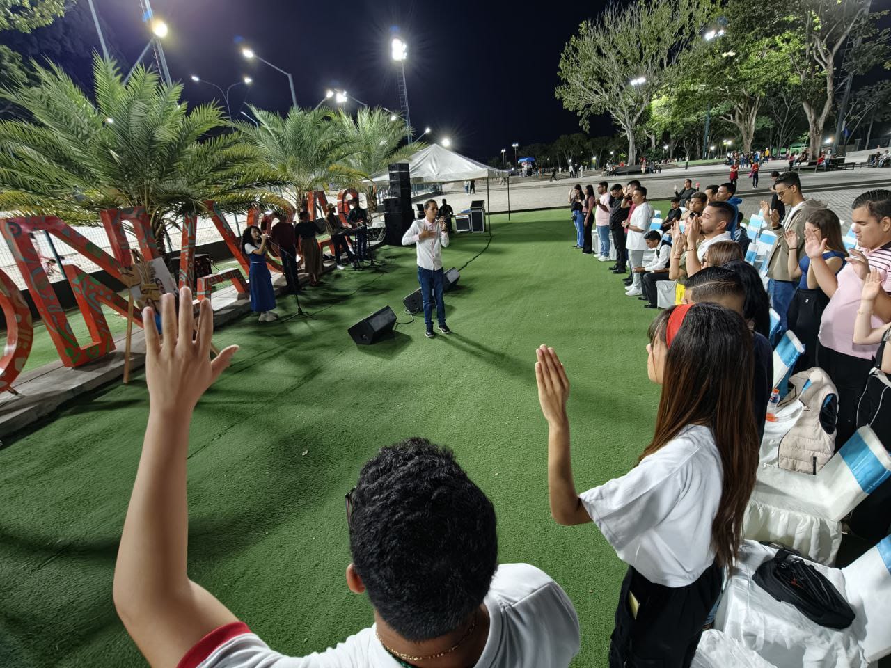 La actividad eclesiástica desarrollada en el Parque Generalísimo «Francisco de Miranda» de la ciudad de Maturín, contó con miles de jóvenes de todos los sectores de la entidad, que con ojos cerrados elevaron sus manos al cielo pidiéndole a Dios la armonía del país y el regreso de la pareja presidencial.