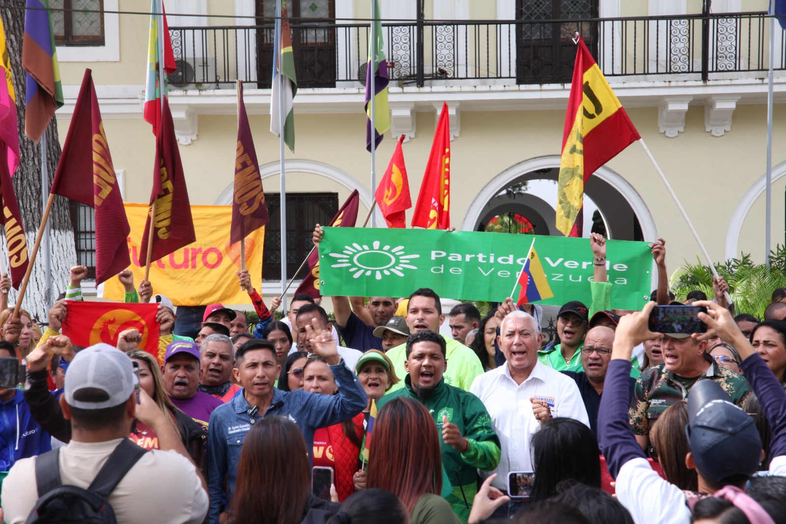 Con sus banderas izadas y consignas de esperanza, integrantes de organizaciones políticas como Organización Renovadora Auténtica (ORA), Podemos, Partido Verde, Futuro, Enamórate, Movimiento Electoral del Pueblo, Unidad Popular Venezolana, Partido Comunista de Venezuela, entre otras, sostuvieron que esta batalla continuará hasta que la pareja presidencial sea devuelta al país.