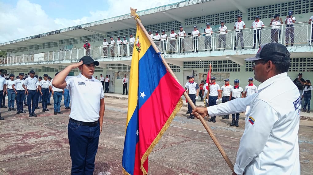 El evento tuvo lugar en el patio central de la “Escuela Básica Manuel Centurión” de la población de Punta de Mata, dónde los estudiantes de los Programas Nacionales de Formación (PNF), Protección Civil, Administración de Desastres y Servicio de Policía, se reunieron para rendir honores al símbolo patrio nacional.