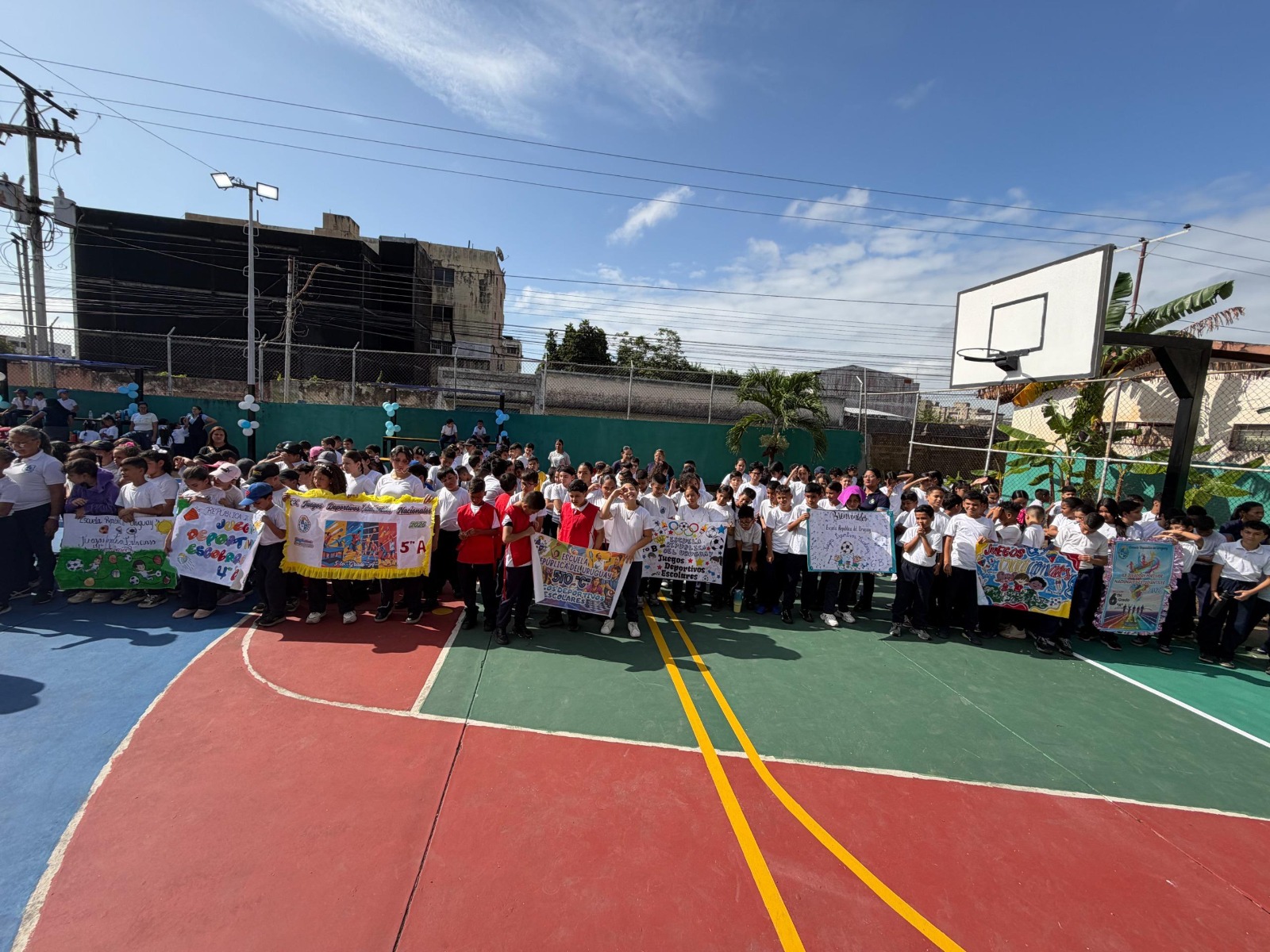 Con un colorido desfile de los estudiantes, este jueves 5 de febrero fue entregada totalmente rehabilitada la cancha deportiva de la escuela República del Uruguay, proyecto que resultó ganador en la pasada consulta popular de la juventud en la Comuna “Gran Cacique Maturín” y beneficia a más de 2 mil 500 personas.