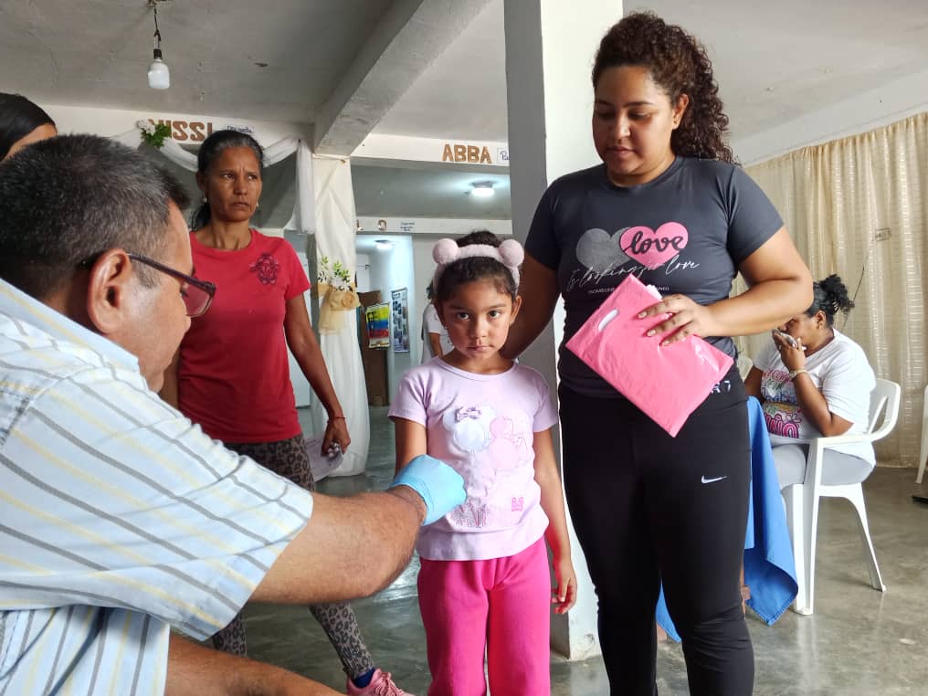 Las instalaciones de la Iglesia Rosa de Saro sirvió de espacio para brindar los servicios de Medicina General, Pediatría, Odontología, Desparasitación, prueba de VIH, Farmacia, Despistaje de Hipertensión Arterial y Glicemia, donde fueron atendidas más de 200 personas.