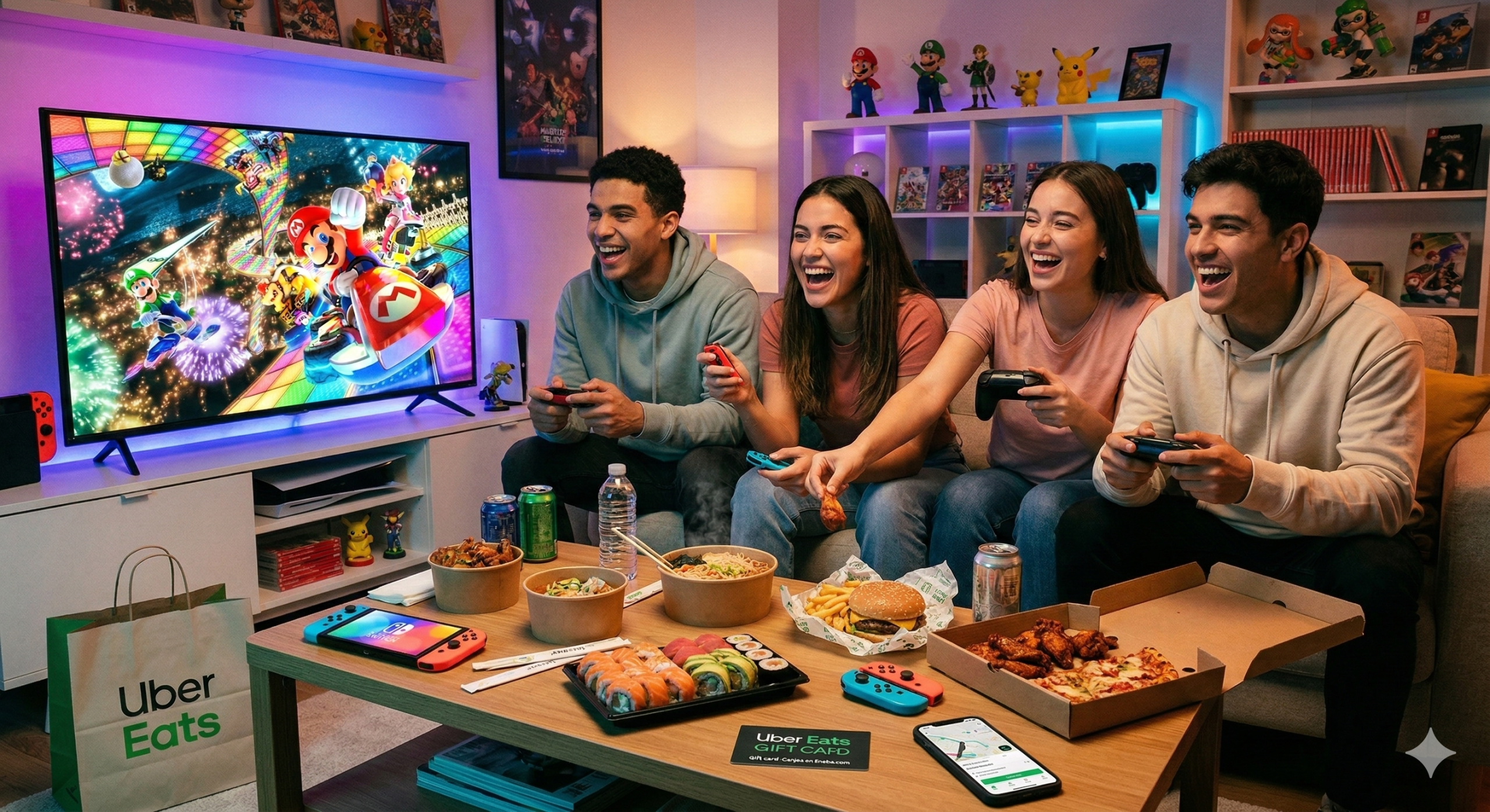 La belleza de esta dinámica está en su simplicidad. No necesitas planear un evento elaborado ni siquiera salir de casa. Solo consigue algunos juegos baratos de Switch, canjea una Uber Eats gift card y deja que la noche fluya. Ya sea que estés riendo durante una partida de Super Mario Party o asegurando una victoria en Splatoon 3, cada momento se siente natural cuando la buena comida está al alcance de la mano.