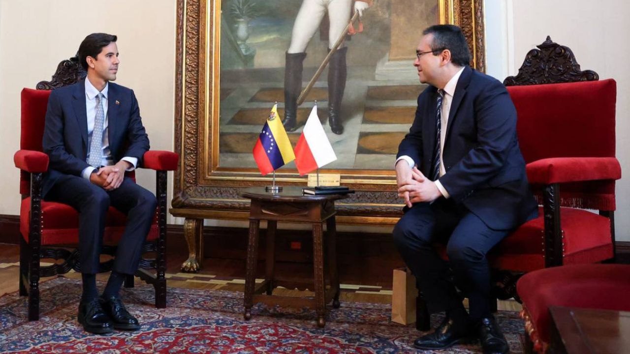 Este lunes, el viceministro para Europa y América del Norte de la Cancillería, Oliver Blanco, sostuvo un encuentro con el encargado de negocios de Polonia en Venezuela, Daniel Gromann.