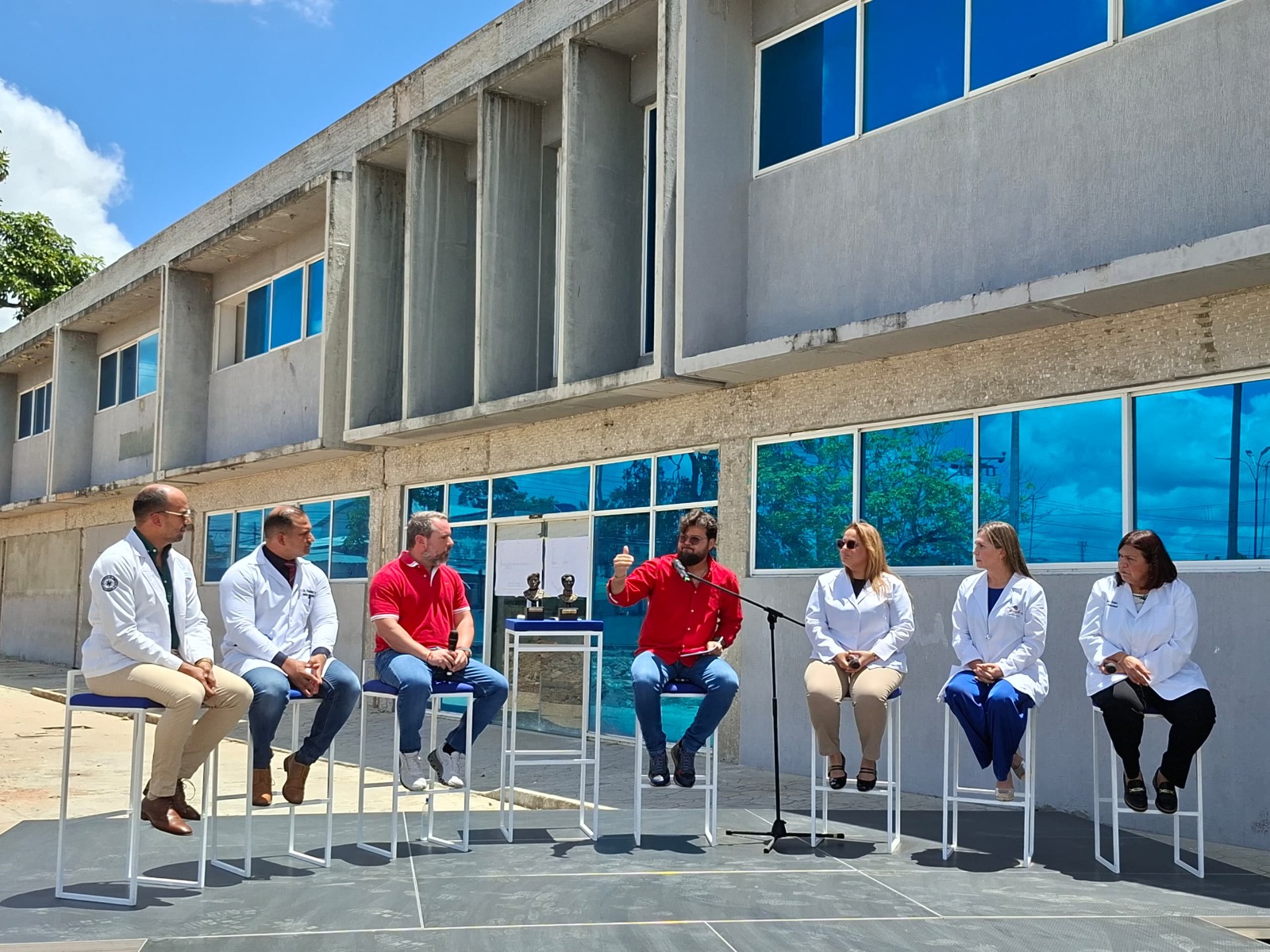 El gobernador Ernesto Luna, acompañado del secretario de Infraestructura de la Gobernación de Monagas, Guillermo Sánchez, la Autoridad Única de Salud, Yerika Alzolay y demás autoridades sanitarias, informa a los monaguenses de los avances de la Clínica Popular “Dr. José María Vargas”.