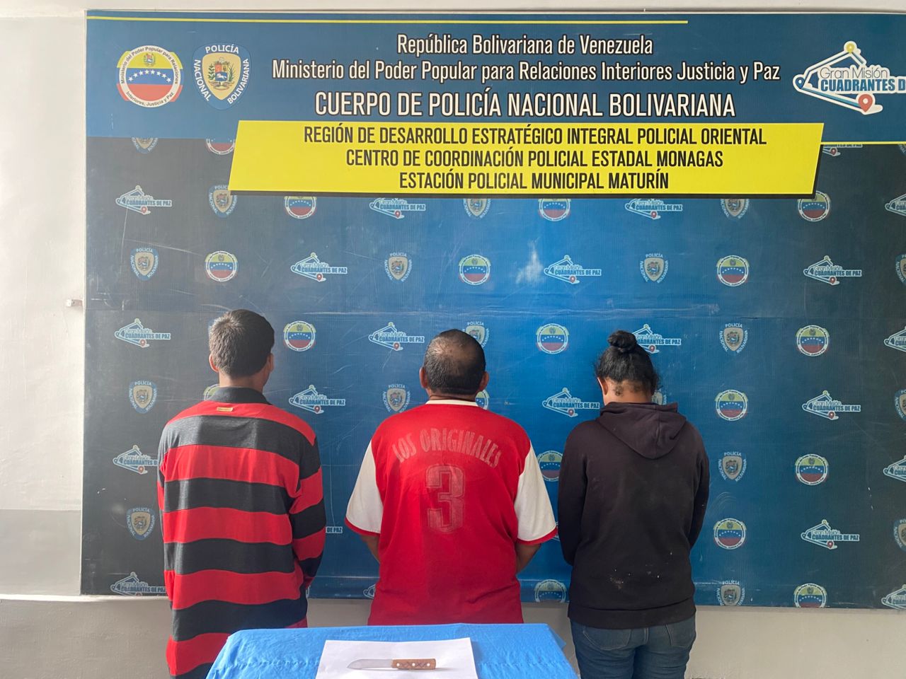 Al verificar la situación en plena flagrancia, los funcionarios de la PNB procedieron a capturar a los ciudadanos: Alí José Barreto de 49 años, José Gregorio Barreto de 29 años y Mariannys del Valle Goitía Maita de 31 años, que al hacerle la revisión corporal se le encontró un arma blanca (cuchillo), razón por la cual la mujer asumió una actitud hostil contra la comisión policial.
