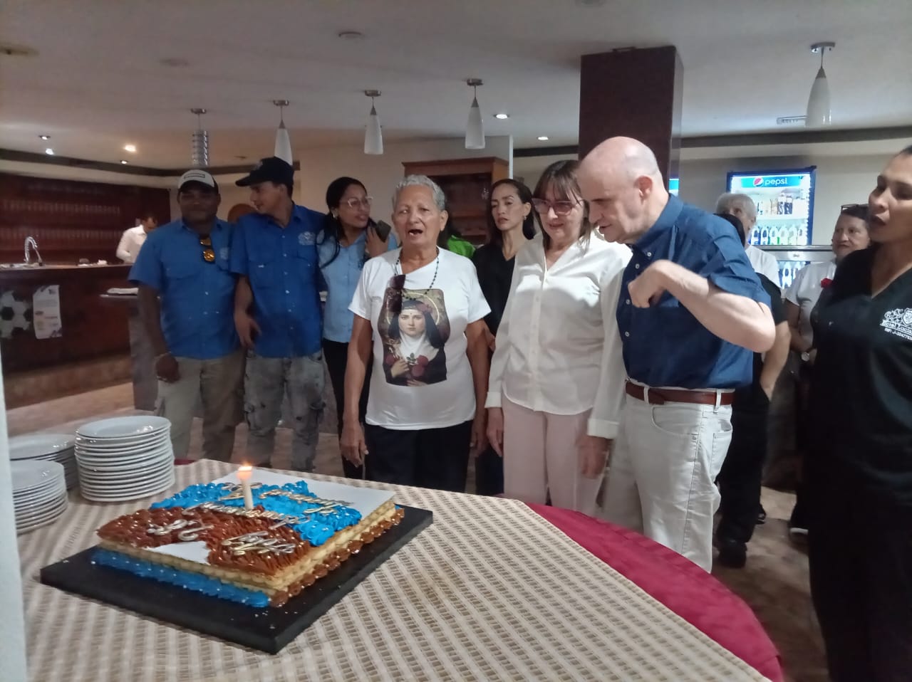 Todos los presentes cantaron el Cumpleaños feliz al hotel.