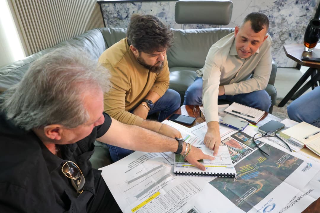 El gobernador Ernesto Luna, junto al ministro Carlos Mast Yustiz evalúan los detalles del plan de mejoramiento del servicio de agua potable.