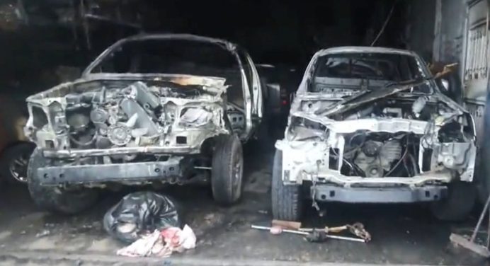 Explosión en Guayaquil dejó de a tres de los cinco vehículos afectados, totalmente calcinados.